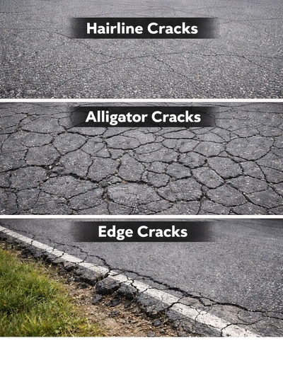 Hairline Cracks might look innocent but prolonged exposure to strong UV rays and temperature swings, they’re early warning signs your asphalt is aging. These small 1/4 inch wide cracks don’t reach the full depth of the pavement—but they can still let moisture in and start bigger problems. Fortunately, they’re easy to repair.